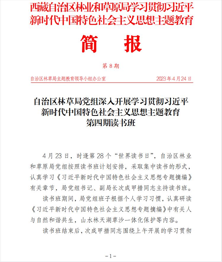 第8期 自治區(qū)林草局黨組深入開展學(xué)習(xí)貫徹習(xí)近平 新時(shí)代中國特色社會(huì)主義思想主題教育 第四期讀書班