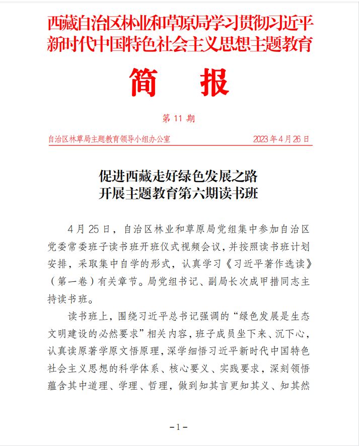 第11期 促進西藏走好綠色發(fā)展之路 開展主題教育第六期讀書班