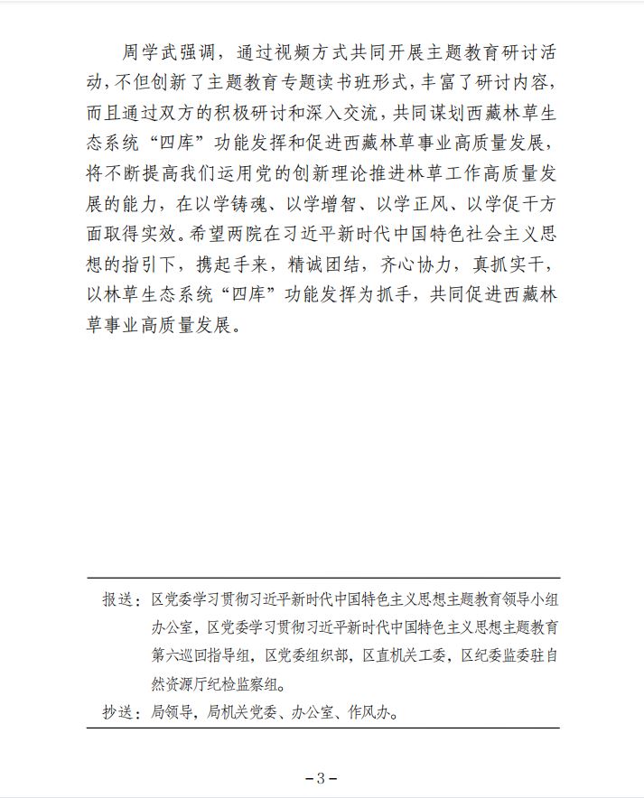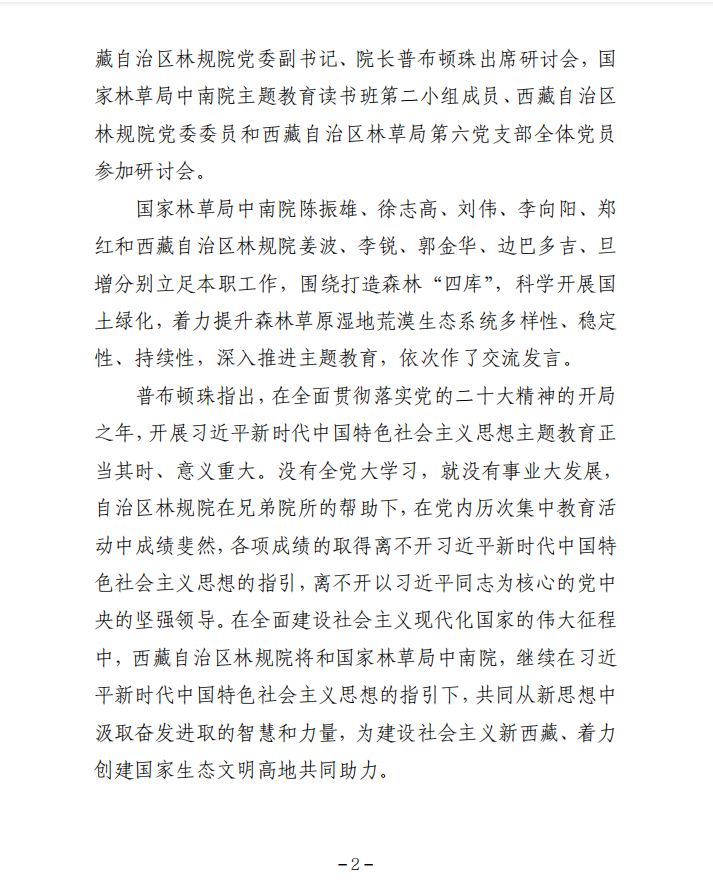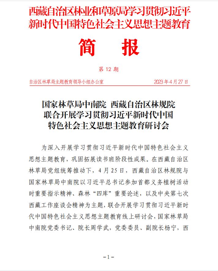 第12期 國家林草局中南院西藏自治區(qū)林規(guī)院 聯(lián)合開展學(xué)習(xí)貫徹習(xí)近平新時(shí)代中國特色社會(huì)主義思想主題教育研討會(huì)