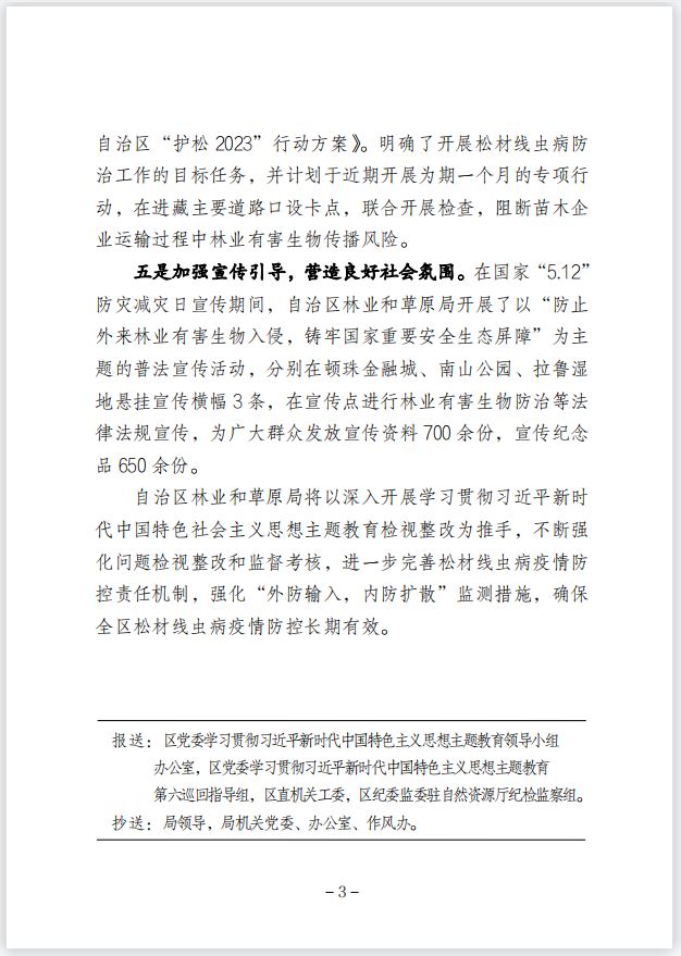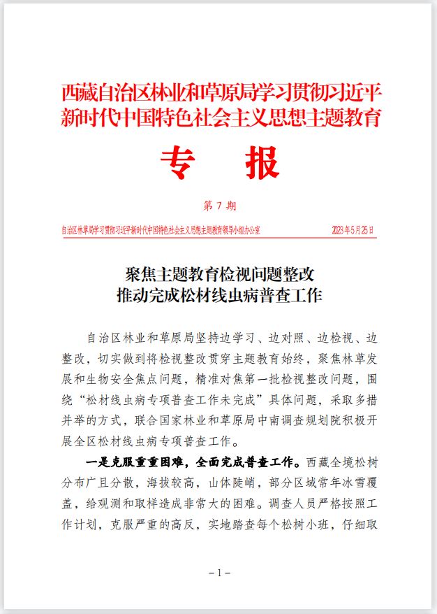 專(zhuān)報(bào) 第7期 聚焦主題教育檢視問(wèn)題整改 推動(dòng)完成松材線蟲(chóng)病普查工作