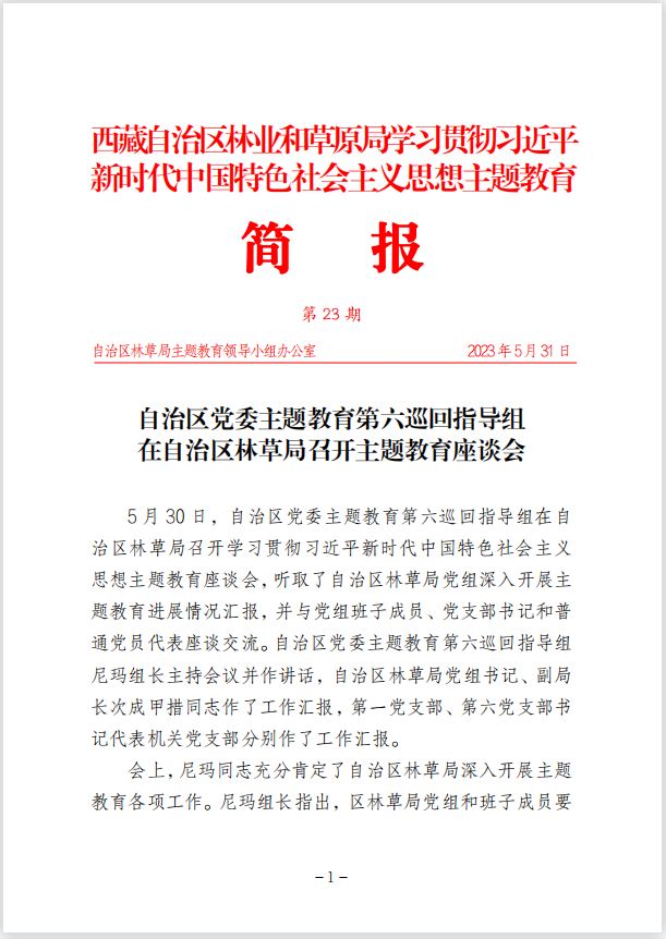 第23期 自治區(qū)黨委主題教育第六巡回指導(dǎo)組在自治區(qū)林草局召開主題教育座談會