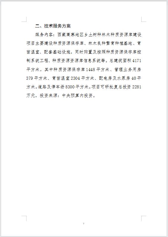 名稱:西藏高寒地區(qū)鄉(xiāng)土樹種林木種質(zhì)資源庫建設(shè)項目初步設(shè)計編制服務(wù)項目