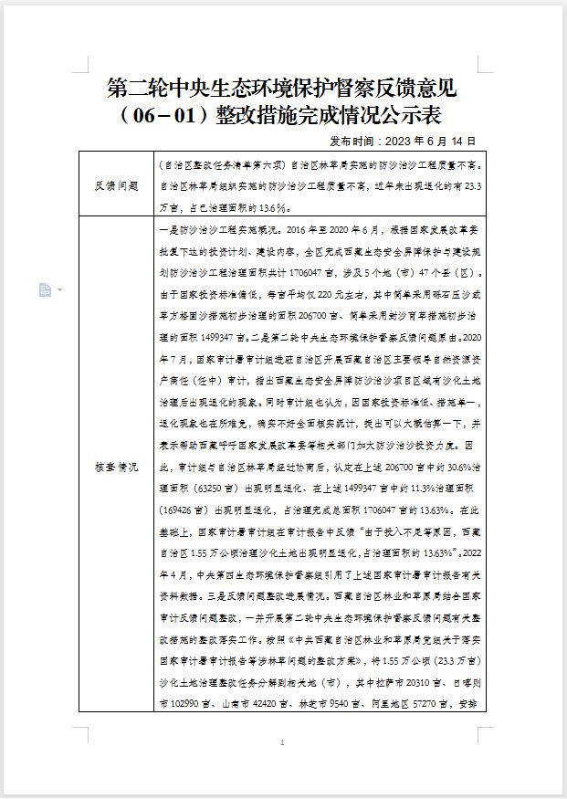 第二輪中央生態(tài)環(huán)境保護督察反饋意見 (06-01)整改措施完成情況公示表