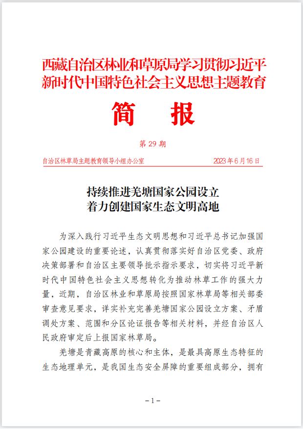 第29期 持續(xù)推進(jìn)羌塘國(guó)家公園設(shè)立 著力創(chuàng)建國(guó)家生態(tài)文明高地