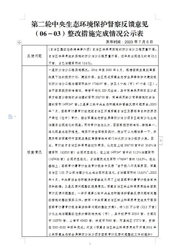 第二輪中央生態(tài)環(huán)境保護(hù)督察反饋意見 (06-03)整改措施完成情況公示表