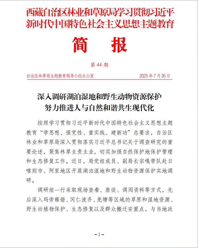 第44期 深入調(diào)研湖泊濕地和野生動物資源保護 努力推進人與自然和諧共生現(xiàn)代化