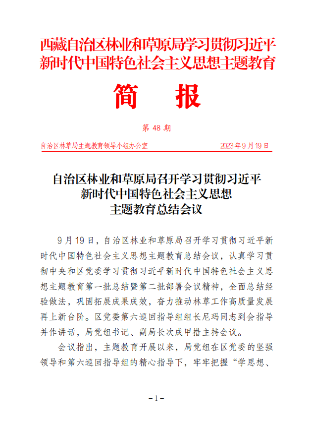 第48期 自治區(qū)林業(yè)和草原局召開學習貫徹習近平 新時代中國特色社會主義思想 主題教育總結(jié)會議