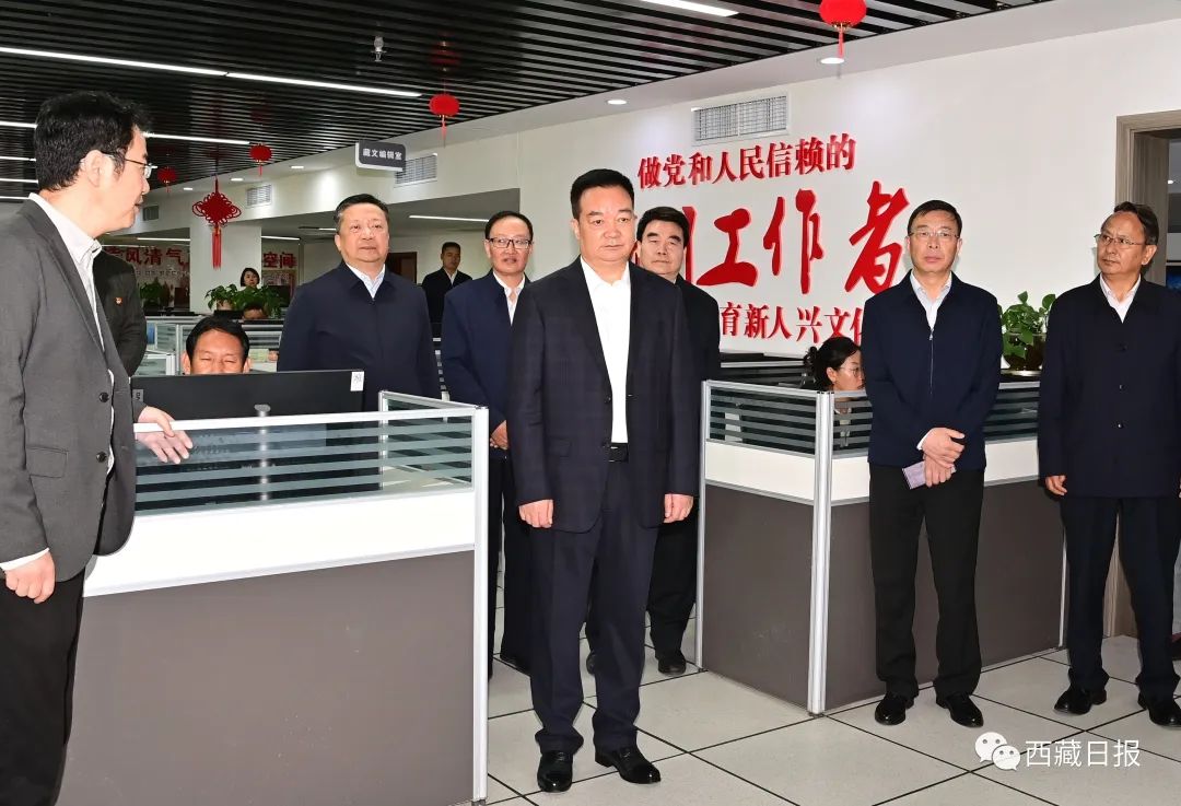 2023年9月25日,自治區(qū)黨委書記王君正來到西藏日報社、西藏廣播電視臺調(diào)研。這是王君正在西藏日報社詳細了解市場化運營、全媒體傳播體系建設(shè)、媒體深度融合發(fā)展等情況。記者 旦增西旦 攝