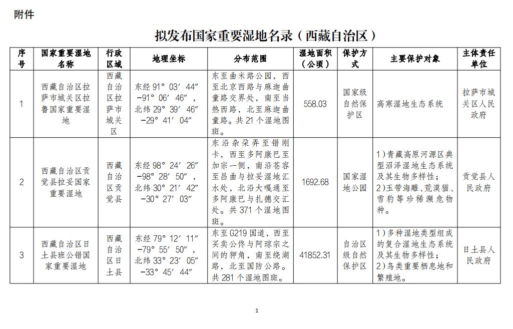 附件:擬發(fā)布國(guó)家重要濕地名錄(西藏自治區(qū))