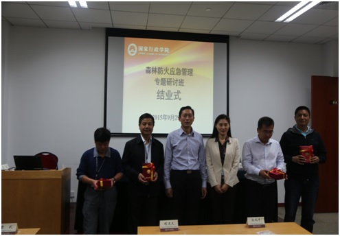 中國林業(yè)網(wǎng)10月10日訊2015年9月20日-29日,森林防火應(yīng)急管理專題研討班在國家行政學(xué)院成功舉辦。國家森防指專職副總指揮杜永勝作專題講座,國家森林防火指揮部辦公室副主任、國家森林公安局副局長柳學(xué)軍參加開班和結(jié)業(yè)儀式并全程跟班參與學(xué)習(xí)研討,國家行政學(xué)院應(yīng)急管理培訓(xùn)中心主任龔維斌、副主任劉釗、賈群分別出席了開班儀式和結(jié)業(yè)儀式。