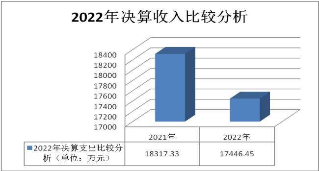 2022年收入總計為17446.45萬元,比上年度收入18317.33萬元減少870.88萬元,減少比例為4.75%;其中一般公共預算財政撥款收入14140.80萬元,比上年度收入13813.36萬元增加了327.45萬元,增加比例為2.37%;年初結(jié)轉(zhuǎn)和結(jié)余3305.65萬元。