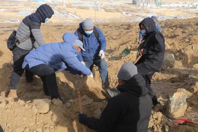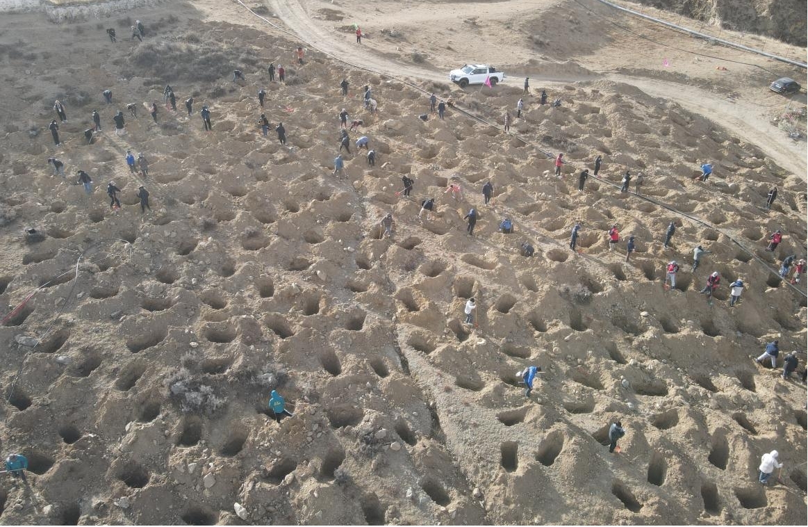 自拉薩南北山綠化2024年度鞏固提升項(xiàng)目啟動(dòng)以來(lái),在包保領(lǐng)導(dǎo)的親自部署推動(dòng)下,桑珠林4號(hào)片區(qū)高效推進(jìn)2024年度鞏固提升工作,鋪設(shè)田間管網(wǎng)3.47萬(wàn)米,開挖種植穴25.03萬(wàn)個(gè)(灌木3.07萬(wàn),喬木21.96萬(wàn)),完成客土0.21萬(wàn)立方米,整地進(jìn)度達(dá)75%左右。為貫徹落實(shí)拉薩南北山綠化指揮部領(lǐng)導(dǎo)相關(guān)指示要求,統(tǒng)籌好高效推進(jìn)鞏固提升和高標(biāo)準(zhǔn)開展造林綠化的關(guān)系,引導(dǎo)全體黨員干部在實(shí)踐中強(qiáng)化對(duì)規(guī)范整地的認(rèn)識(shí),杜絕閉門造車問題的發(fā)生,根據(jù)局黨組有關(guān)指示,自治區(qū)林規(guī)院開展了此次主題黨日活動(dòng)。黨委班子、拉薩南北山綠化指揮部辦公室黨員同志與全院120余名黨員干部一同在一個(gè)個(gè)挖掘機(jī)開挖的坑穴中間揮鐵鍬、撿石塊,迎著凜冽的寒風(fēng),嚴(yán)格對(duì)照相關(guān)標(biāo)準(zhǔn),認(rèn)真細(xì)致地修整種植穴,勞動(dòng)一絲不茍、場(chǎng)面熱火朝天。經(jīng)過(guò)兩個(gè)小時(shí)的集中勞動(dòng),1000多個(gè)標(biāo)準(zhǔn)的種植穴整齊排列在山坡上。
