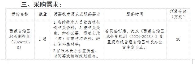 項(xiàng)目名稱(chēng):西藏自治區(qū)林長(zhǎng)制規(guī)劃(2024-2028)