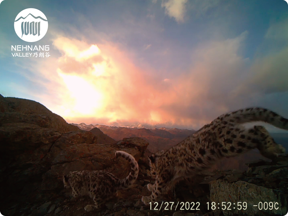 時(shí)隔半年后的2022年12月27日,我們的紅外相機(jī)再一次捕捉到她的身影,更讓人欣喜的是,她的身后帶著兩只年幼的小雪豹。自2021年乃朗谷開(kāi)展雪豹監(jiān)測(cè)以來(lái),紅外相機(jī)還是第一次監(jiān)測(cè)到帶崽的雪豹身影,這意味著,乃朗谷就是它們常駐且可以繁衍后代的穩(wěn)定棲息地。