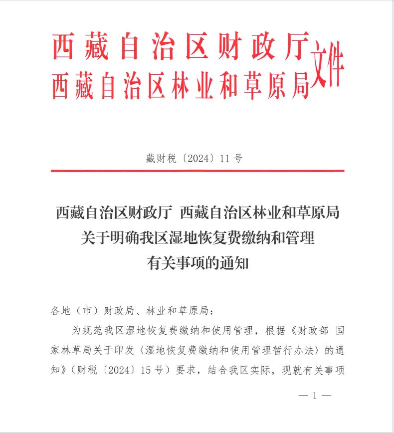 西藏自治區(qū)財政廳 西藏自治區(qū)林業(yè)和草原局關(guān)于明確我區(qū)濕地恢復費繳納和管理有關(guān)事項的通知