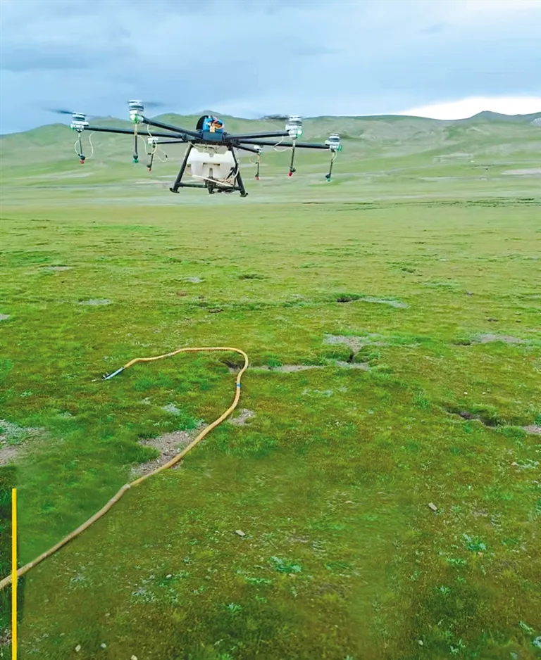 那曲市色尼區(qū)無人機(jī)噴藥滅殺草原毛蟲。