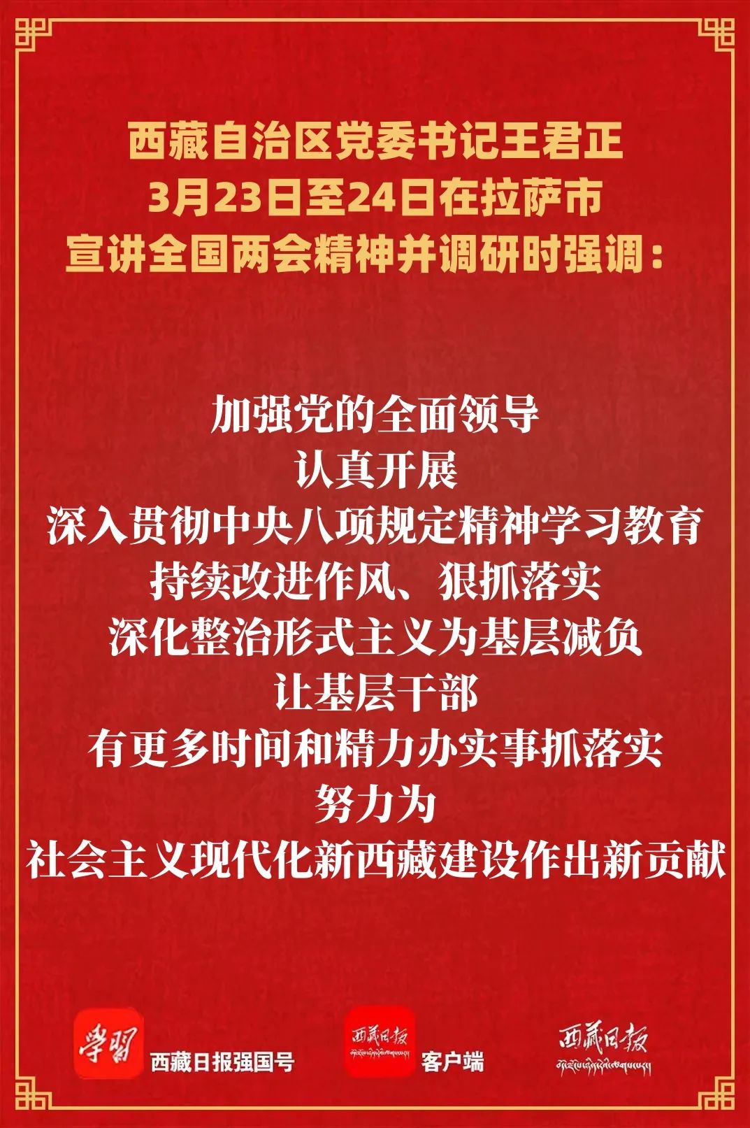 王君正在拉薩市宣講全國(guó)兩會(huì)精神并調(diào)研時(shí)強(qiáng)調(diào)