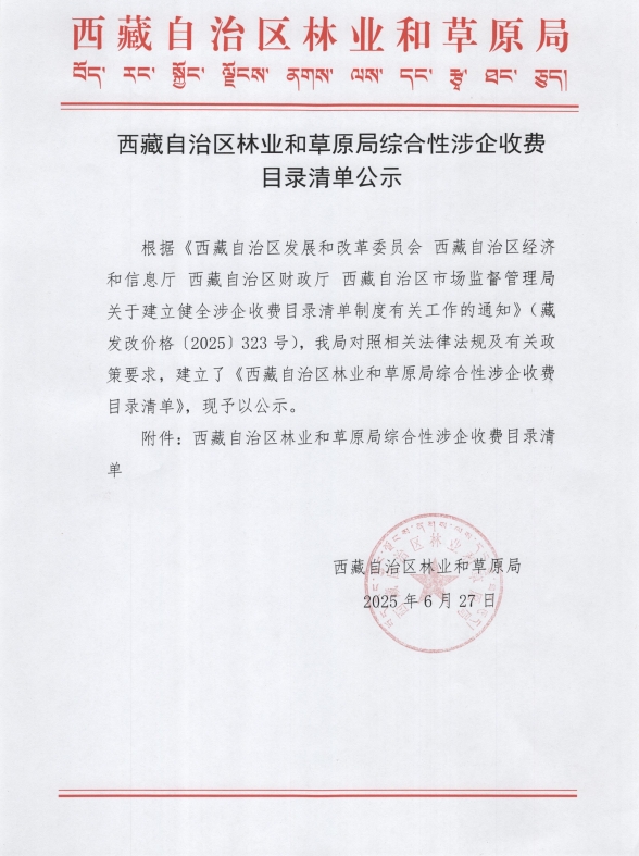 西藏自治區(qū)林業(yè)和草原局綜合性涉企收費目錄清單公示