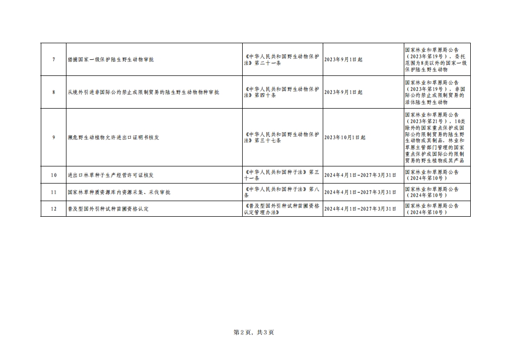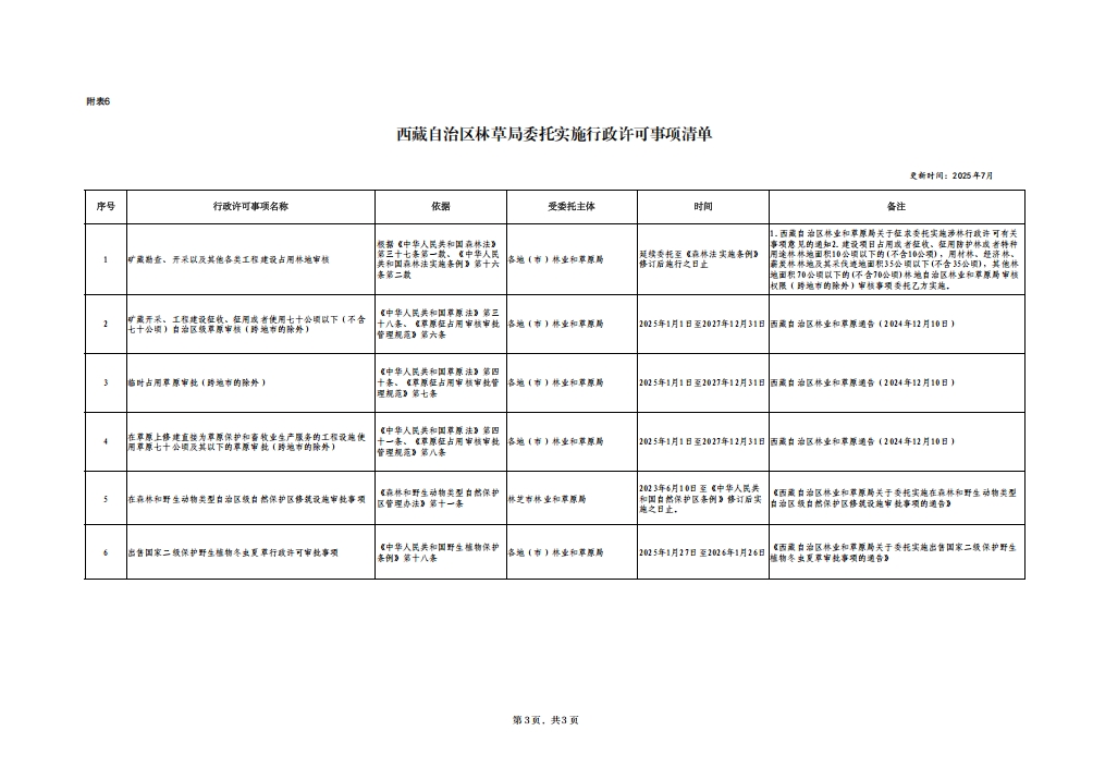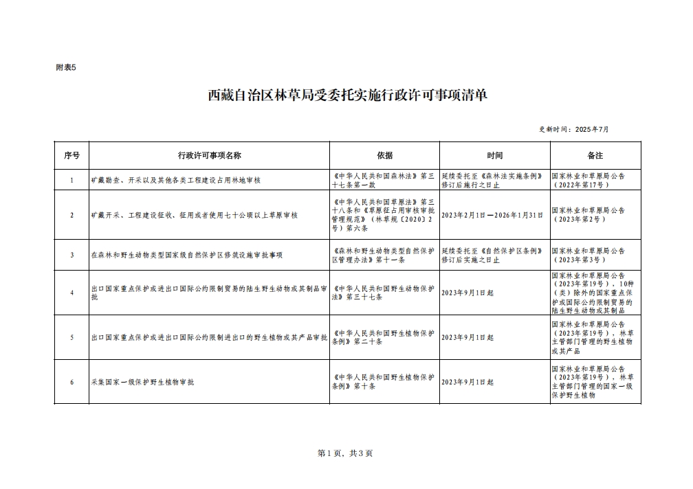 西藏自治區(qū)林草局委托實(shí)施行政許可事項(xiàng)清單
