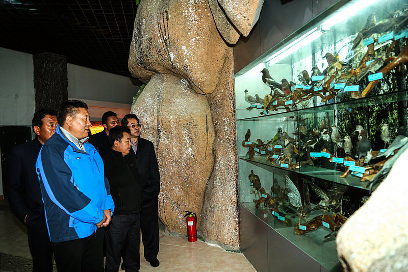 云丹指出,林芝市自然博物館是全區(qū)唯一一個(gè)自然博物館,有著非常重要的意義,是重要的生態(tài)宣傳教育的場(chǎng)所,館藏物種標(biāo)本也比較齊全。希望林芝市自然博物館不要局限于收集林芝市區(qū)域內(nèi)分布的物種標(biāo)本,進(jìn)一步解放思想,拓寬思路,收集和收藏全區(qū)物種標(biāo)本,結(jié)合生態(tài)教育基地成為全區(qū)最全面、最權(quán)威的自然博物館。