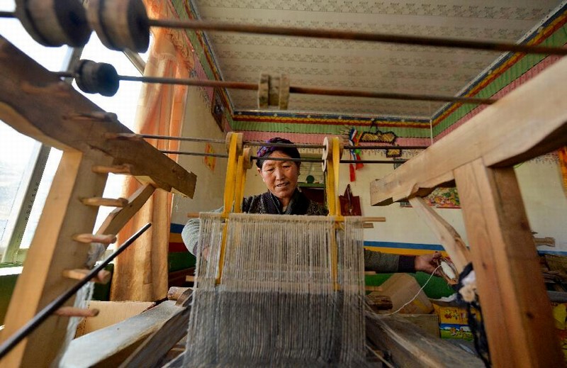 山南地區(qū)貢嘎縣杰德秀編制氆氌的婦女