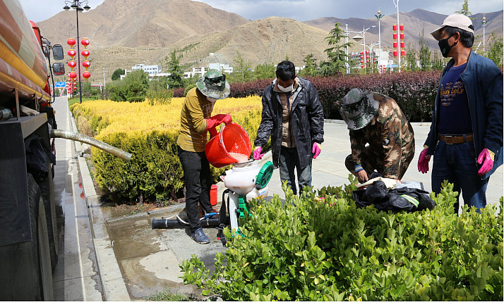 近期山南市城鎮(zhèn)綠化帶病蟲害發(fā)生率明顯增多。我們按照“預(yù)防為主,積極防治”的工作理念。及時(shí)邀請(qǐng)森防站工作人員到實(shí)地進(jìn)行查看病蟲害的發(fā)生發(fā)展規(guī)律以及害蟲的形態(tài)特征后確定害蟲的種類,提出了防治措施。于5月10日至5月16日組織人員開展了為期7天的防治工作。此次防治工作共出動(dòng)20臺(tái)機(jī)械,63人次,用106㎏環(huán)保型農(nóng)藥,防治面積約達(dá)2000平方米。