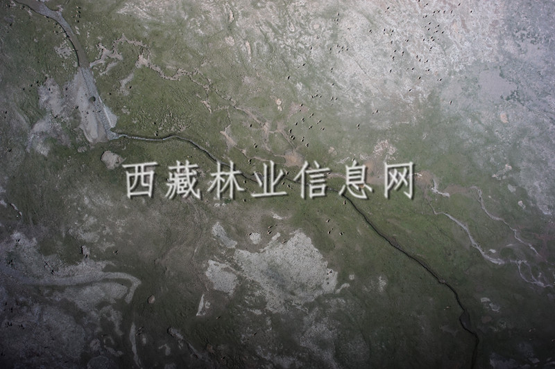 固定無人機空中俯拍藏羚羊圖片,圖中能清晰的看到母藏羚羊帶著剛出生的幼體在遷徙路上