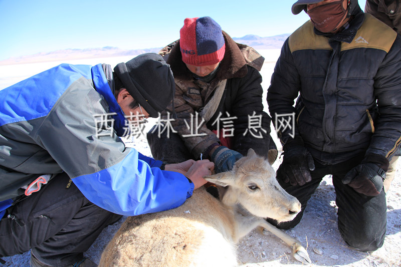 2013年科考隊在羌塘保護區(qū)內(nèi)給藏羚羊佩戴北斗衛(wèi)星項圈