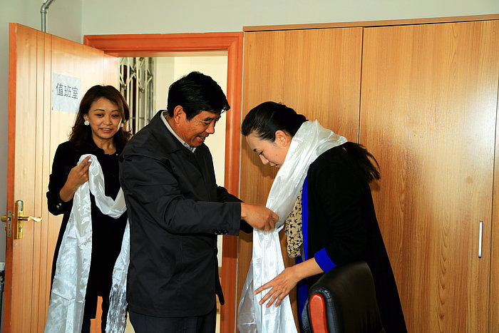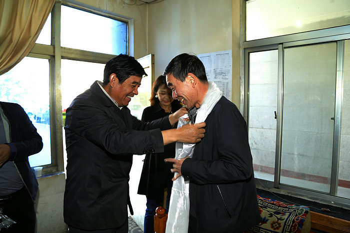 慰問(wèn)工作組為值班帶班工作人員獻(xiàn)上哈達(dá)