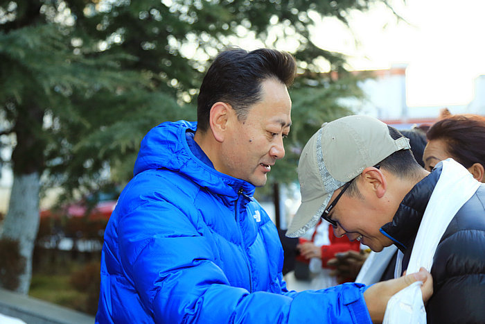最后,廳領(lǐng)導(dǎo)為駐村工作隊(duì)隊(duì)員獻(xiàn)上哈達(dá),歡送第六批駐村工作隊(duì)出發(fā)。