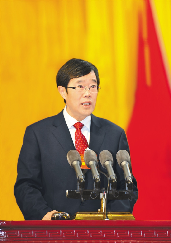 1月9日上午,自治區(qū)政協(xié)副主席高揚代表自治區(qū)政協(xié)十屆常委會作工作報告。記者 旦增西旦 攝