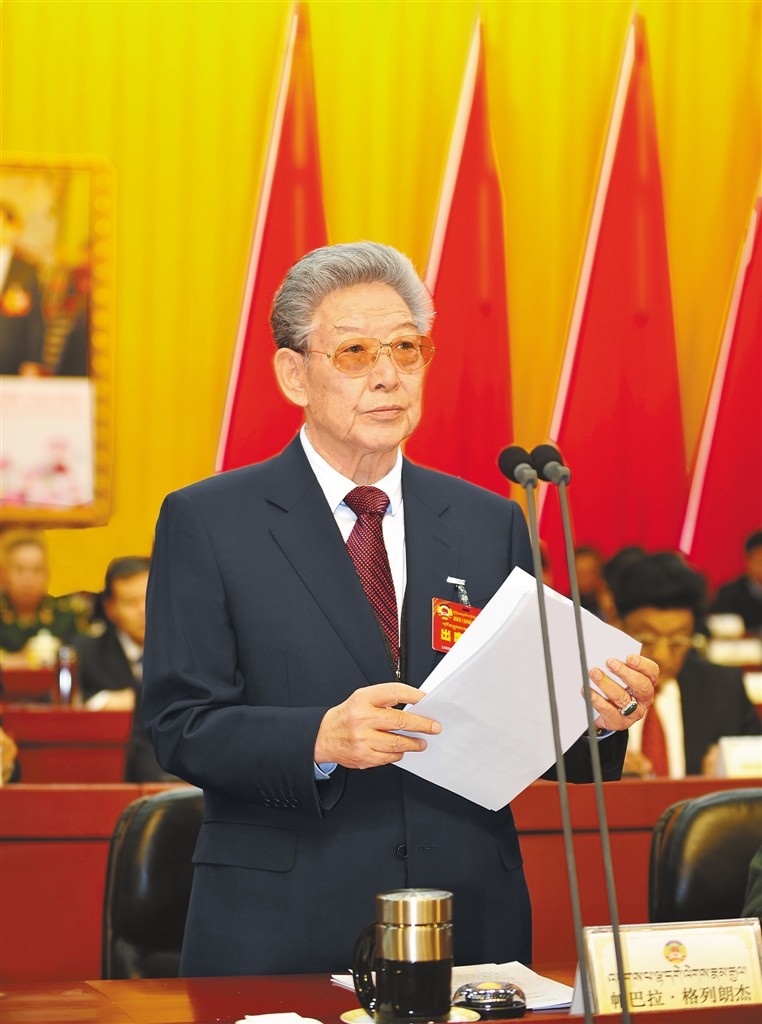 上午10時,在雄壯的中華人民共和國國歌聲中,帕巴拉·格列朗杰宣布:中國人民政治協(xié)商會議第十屆西藏自治區(qū)委員會第五次會議開幕。