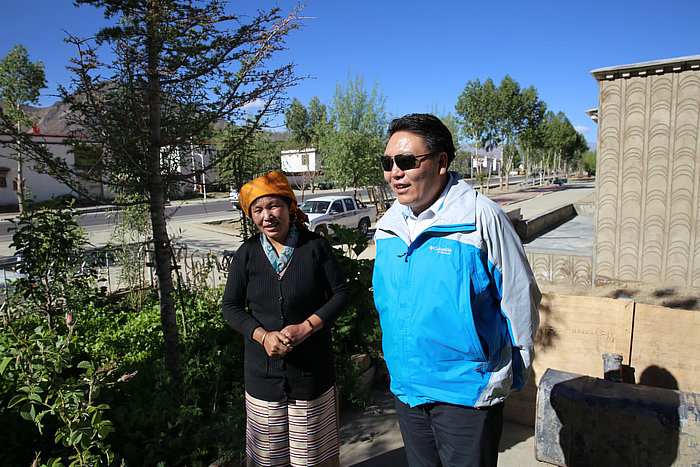 在農牧民家查看“消除無樹戶、消除無樹村”工作開展情況