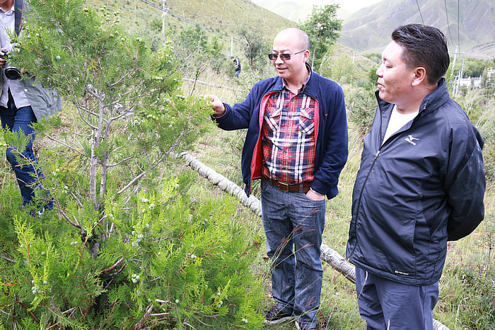 云丹廳長實地考察了試驗點,仔細聽取了區(qū)林木科學研究院和廳造林綠化處相關(guān)負責人的情況介紹,就管護情況與護林員進行交流。云丹廳長充分肯定了區(qū)林科院在山體綠化試驗項目所取得的初步成效,對試驗中表現(xiàn)較好的本地品種江孜沙棘、巨柏、銀白楊等給予充分認可。他強調(diào),一要加大科學技術(shù)研究,大力培育鄉(xiāng)土樹種和良種壯苗,開展困難立地造林等關(guān)鍵技術(shù)研究,破解制約造林質(zhì)量的瓶頸。二要加大示范推廣,加強培訓和示范基地建設(shè),充分發(fā)揮示范、帶動、輻射作用。三要加強苗圃建設(shè)。打造集科研、培育、示范、推廣、應用、觀賞為一體的自治區(qū)萬畝保障性良種繁育基地,充分發(fā)揮“造林綠化第一車間”的作用,為“兩江四河”流域造林綠化提供優(yōu)質(zhì)苗木。四要弘揚塞罕壩精神,區(qū)林科院干部職工要樹立和弘揚牢記使命、艱苦創(chuàng)業(yè)、綠色發(fā)展、馳而不息、久久為功的塞罕壩精神和“功成不必在我”的理念,主動作為,不斷提高科學研究水平和創(chuàng)新發(fā)展能力,為加強美麗西藏和國家生態(tài)安全屏障建設(shè)科學研究事業(yè)做出新的更大的貢獻。