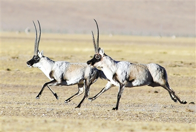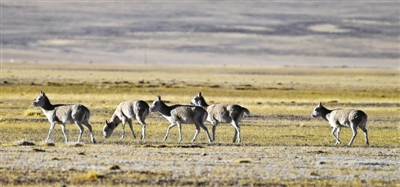 藏羚羊是棲息于海拔3700米至5500米的高山草原、草甸和高寒荒漠地帶的珍稀瀕危野生動(dòng)物,也是國(guó)家一級(jí)保護(hù)動(dòng)物。近年來,西藏羌塘國(guó)家級(jí)自然保護(hù)區(qū)藏羚羊由保護(hù)前的6萬多只已恢復(fù)到現(xiàn)在的15萬多只。每年的11月至12月是藏羚羊的交配期,在此期間,“分居”半年之久的雌雄藏羚羊從各自生活區(qū)域遷徙數(shù)百公里,聚集到冬季交配地,開始“群居”生活。圖為申扎縣買巴鄉(xiāng)魯確塘國(guó)家級(jí)自然保護(hù)區(qū)內(nèi)的藏羚羊。