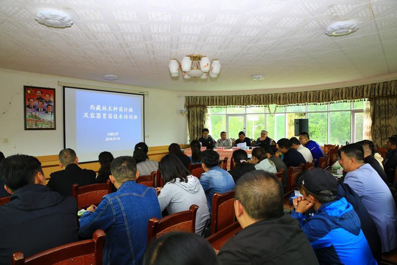 為提高全區(qū)育苗技術(shù)水平,增加苗木自供能力,縮短育苗時間,緩解我區(qū)苗木短缺的狀況,為我區(qū)造林綠化工程提供更多的良種壯苗,2018年7月9~7月11日在拉薩舉辦了全區(qū)林木種苗容器育苗及扦插繁殖技術(shù)培訓(xùn)班。自治區(qū)林業(yè)廳索朗旺堆副廳長、廳相關(guān)處室、七市地造林科負(fù)責(zé)人、中心苗圃、部分重點(diǎn)縣林業(yè)局苗圃及兩個萬畝和五個千畝苗圃技術(shù)人員,共60余人參加了培訓(xùn)。