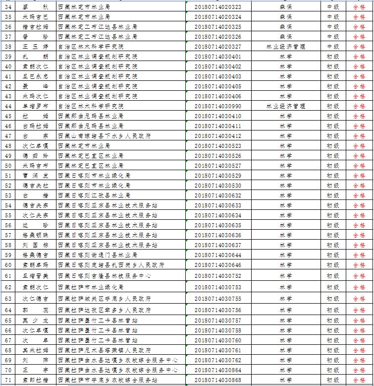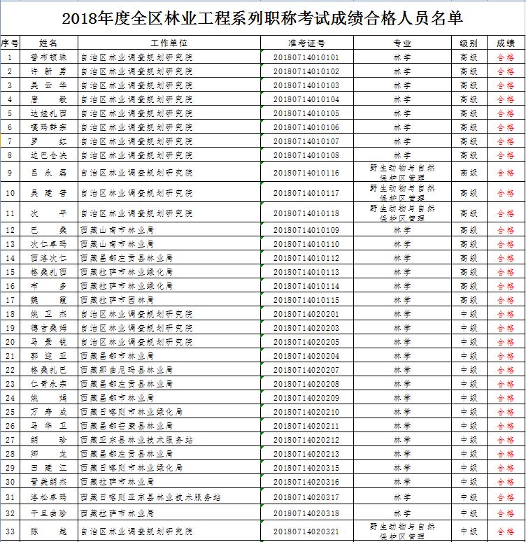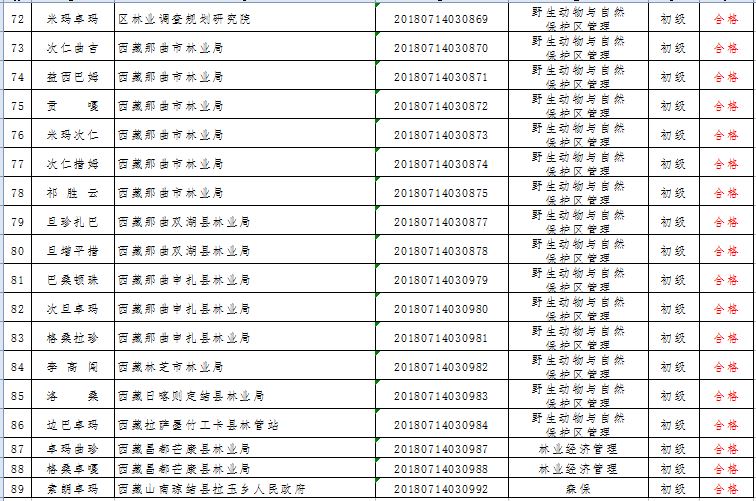 今年全區(qū)報考林業(yè)工程系列職稱考試的考生138人(其中自治區(qū)24人、日喀則32人、拉薩22人、那曲20人、山南15人、林芝12人、昌都10人、阿里3人)。實考119人,缺考19人。通過合格線的89人(詳見附表)。