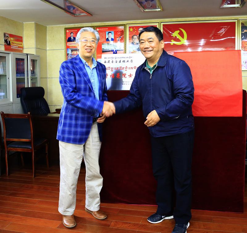 中國(guó)工程院院士曹福亮、自治區(qū)林業(yè)廳黨組書(shū)記次成甲措為“西藏自治區(qū)林業(yè)廳曹福亮院士工作站”揭牌。