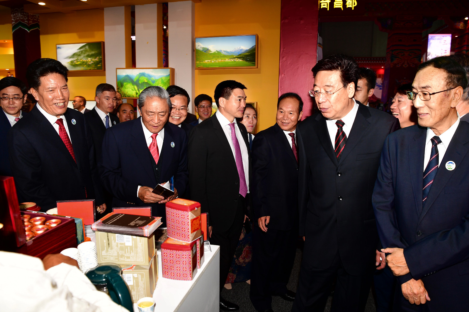 西藏自治區(qū)領(lǐng)導(dǎo)和中外嘉賓參觀第四屆藏博會(huì)展覽展示
