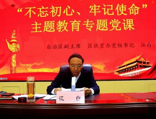 江白副主席指出,開展“不忘初心、牢記使命”主題教育,是以習(xí)近平同志為核心的黨中央統(tǒng)攬偉大斗爭(zhēng)、偉大工程、偉大事業(yè)、偉大夢(mèng)想作出的又一重大戰(zhàn)略部署,是堅(jiān)持思想建黨、理論強(qiáng)黨和加強(qiáng)新時(shí)代黨的政治建設(shè)、思想建設(shè)、組織建設(shè)、作風(fēng)建設(shè)的根本之舉,是信心所在、黨心所系、民心所向、決心所致。區(qū)黨委、政府高度重視“不忘初心、牢記使命”主題教育,7月1日、5日,自治區(qū)黨委書記吳英杰、自治區(qū)政府主席齊扎拉分別帶頭作了專題黨課,為我們做好找差距、抓整改指明了方向,樹立了表率。