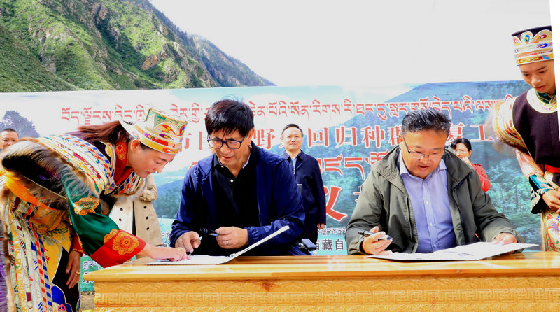 9月10日,西藏自治區(qū)林業(yè)和草原局在林芝市朗縣啟動(dòng)了巨柏野外回歸種群恢復(fù)工程。國家林業(yè)和草原局野生植物保護(hù)司副司長劉德望、西藏自治區(qū)林業(yè)和草原局副局長索朗旺堆、林芝市副市長肖鶴、北京林業(yè)大學(xué)教授張志翔及中科院華南植物院、西藏林木科學(xué)研究院、林芝市林業(yè)和草原局、林芝市朗縣等相關(guān)部門負(fù)責(zé)同志參加了啟動(dòng)儀式。啟動(dòng)儀式上,北京林業(yè)大學(xué)和西藏林木科學(xué)研究院簽署了鄉(xiāng)土樹種資源開發(fā)與保護(hù)合作研究協(xié)議。
