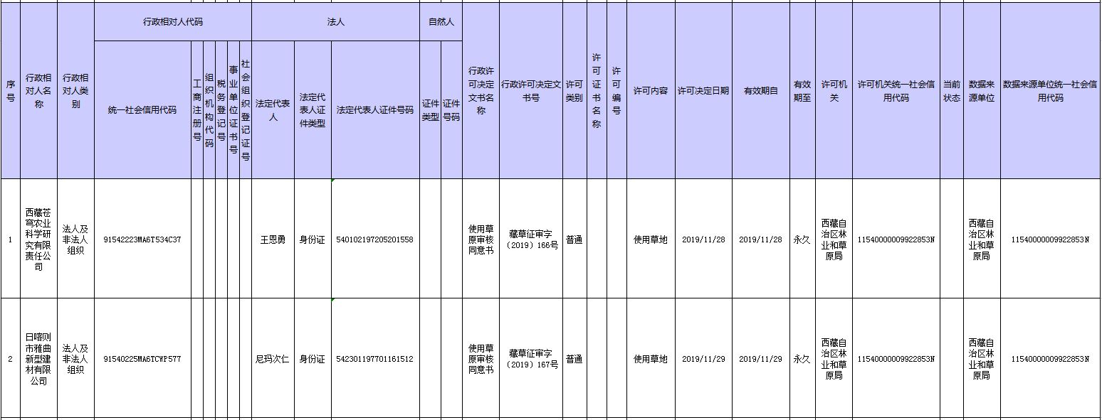 西藏自治區(qū)林業(yè)和草原局行政許可公示