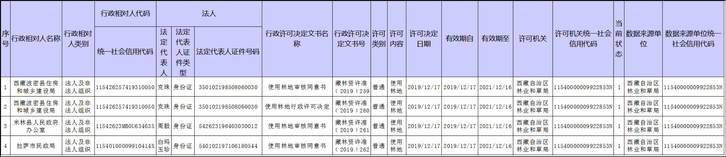 西藏自治區(qū)林業(yè)和草原局行政許可公示