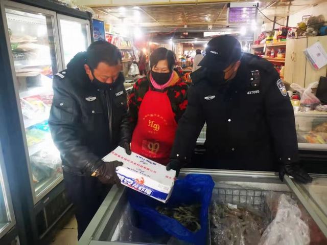 圖為林芝市波密縣森林公安局民警對農(nóng)貿(mào)市場海鮮批發(fā)店檢查