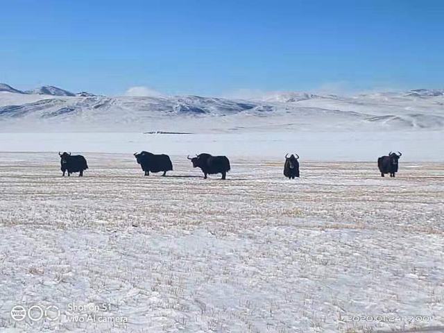 圖為阿里地區(qū)野保員在保護(hù)區(qū)內(nèi)巡護(hù)時遇到野牦牛