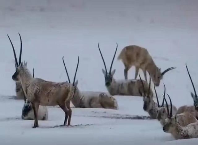 圖為那曲市林草局工作人員巡護(hù)時遇到藏羚羊