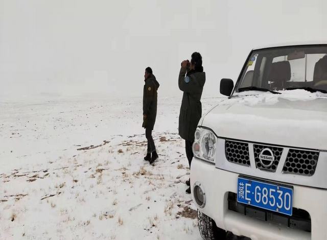 圖為那曲市林草局工作人員在保護(hù)區(qū)內(nèi)巡護(hù)