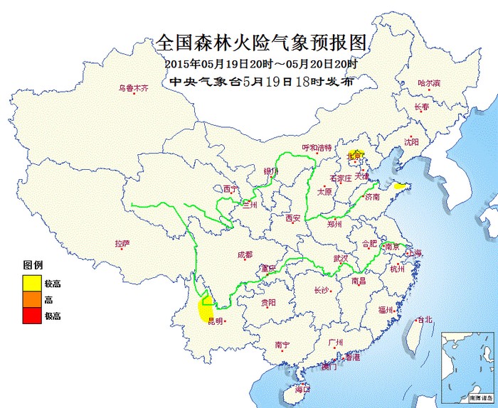 據(jù)中央氣象臺(tái)5月19日下午預(yù)報(bào),今天晚上到明天,北京北部、河北北部、山東半島東部、云南北部等地的部分地區(qū)森林火險(xiǎn)氣象等級(jí)為中度危險(xiǎn)(三級(jí))。