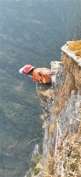 在懸崖峭壁制高點(diǎn)偵察火場情況。