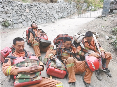 4月11日,根據(jù)作戰(zhàn)部署,九龍大隊被安排阻擊已越過山脊線北線的火頭。北線火頭位于海拔4000余米的絨古溝山,就算是快速強(qiáng)行軍也需要4小時才能抵達(dá)火場。